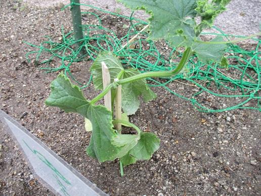 5月17日、キュウリの枝が骨折していました。割りばしギブスで固定しました。早く治ってね。