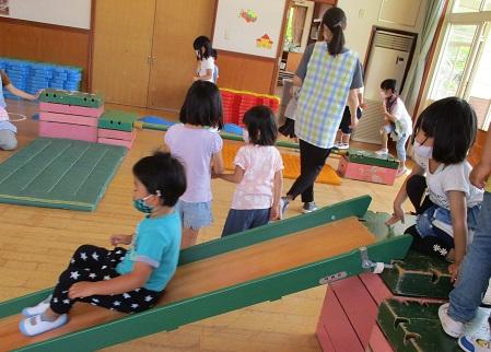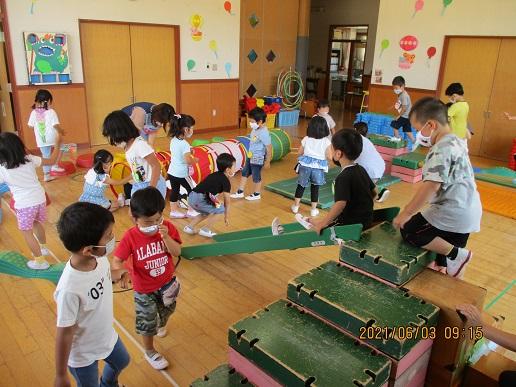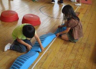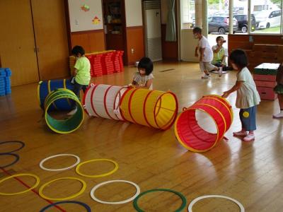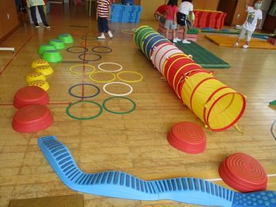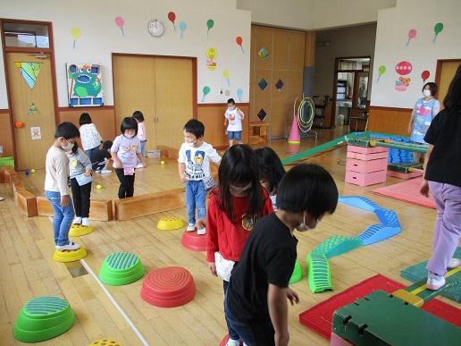 <チャレンジ遊園地>跳んだり、跳ねたり、玉投げしたり、いろんな運動遊びを楽しみました