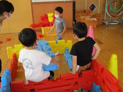 6月2日、年長ほし組さんは、年少もも組さんが楽しく安全に遊べるようにと「手作り遊園地」を作ることにしました。その様子をご紹介します。