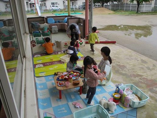 <おうちごっこ>雨のため園庭では遊べませんが、ここだったら外遊びができます