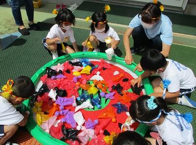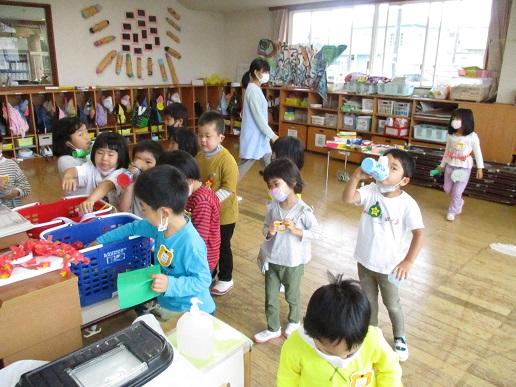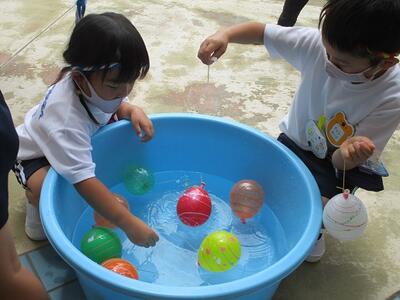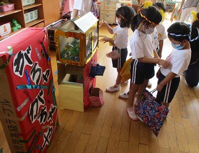 年長ほし組さんの出店は、「ガチャガチャ」と「金魚すくい」です。