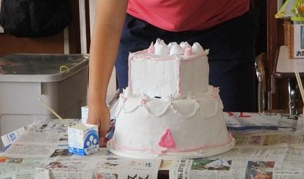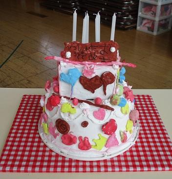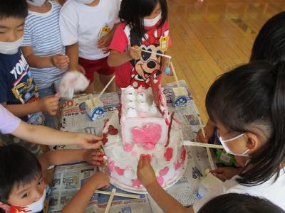 その日に向けて、年長ほし組さんは大きな「誕生会用ケーキ」(工作)を作りました。