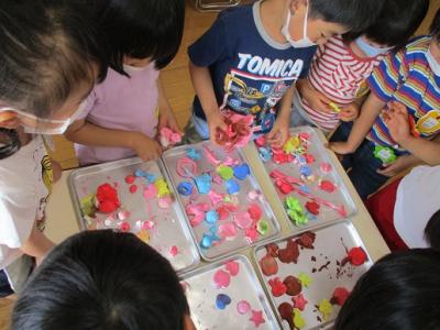 6月18日(金)、年長ほし組さん、年少もも組さんは、父の日のプレゼントを作りました。