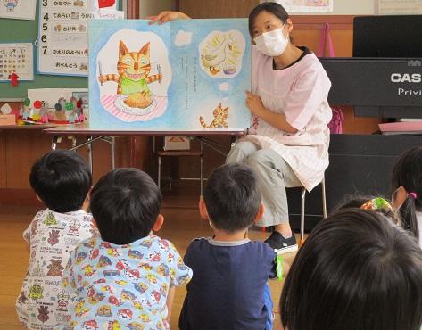 プレゼントをもらったり、大きな絵本を読み聞かせしてもらったりして楽しく過ごしました。