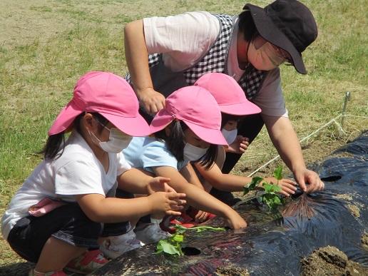 6月1日(火)、畑にサツマイモの苗を植えました。一人1本ずつ植えました。