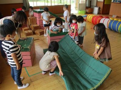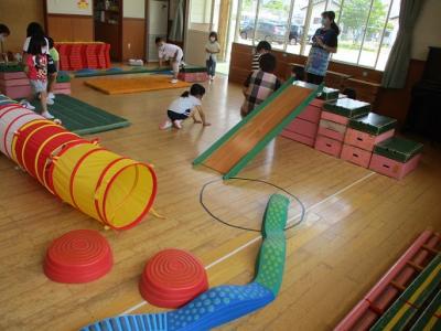 年少もも組さんが楽しく安全に遊べるか、話し合って改良しました。