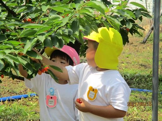 6月15日(水)、園の保護者(佐藤さん)が栽培しているサクランボ農園へ行ってサクランボ狩りをしました。いろんなサクランボがあり、味くらべをしたりお土産にしたりしました。