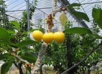サクランボ農園に到着です。佐藤さんから「おいしいサクランボの見つけ方」や「上手な採り方」を教えていただきました。