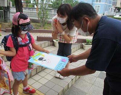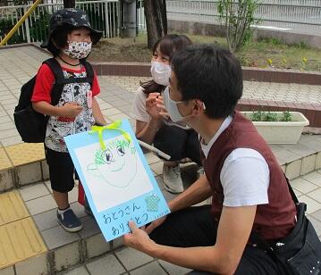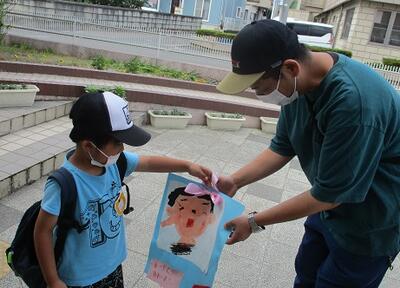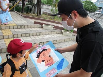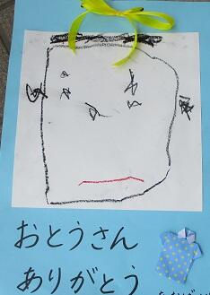 降園する際、お迎えにきたお父さんに、「ありがとう」と言って、お父さんの顔の絵をプレゼントしました。