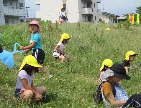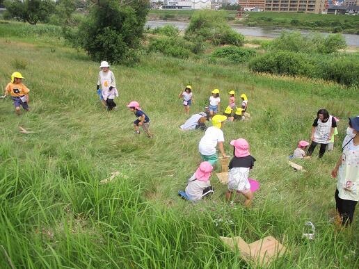草がぐんぐん伸びていて少し滑りにくかったですが、広い堤防でたっぷり遊ぶことができました。