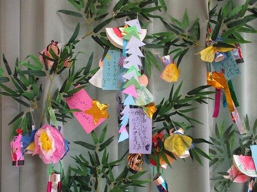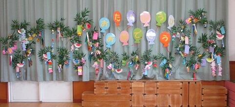 会場いっぱいに手作りの七夕飾りを飾りました。雰囲気が盛り上がります。