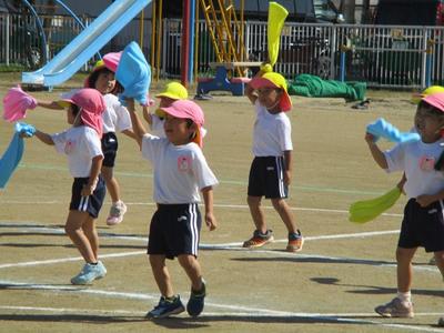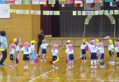 3 ダンス「まわせ!まわせ!」(年少もも組) 飾りをぶんぶん回して踊りました。