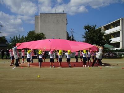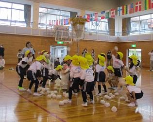 2 玉入れ「がんばりパワーを集めるぞ」(年少・年長学級合同)