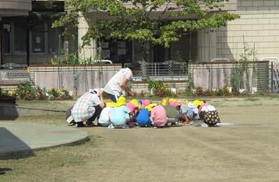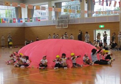 年長ほし組は、園庭でバールンを大きく広げました。見事!