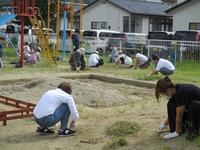 6月26日 保護者全員で除草作業をし、遊具周辺や畑がきれいになりました。「気持ちいい!」