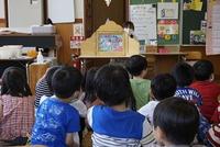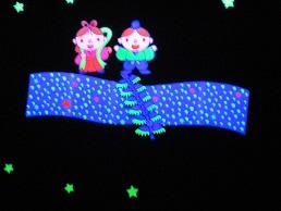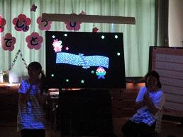 最後に、「ブラックライトのパネルシアター」で「たなばたのお話」を楽しみました。