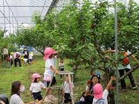 近くのさくらんぼ農園へ全員で歩いて行きました。さくらんぼの木から自分で採って、ほっぺたが落ちるほどおいしいさくらんぼをたくさん食べました。帰りに5個おみやげに持ち帰りました。最高にいい気分、思い出いっぱい。