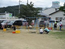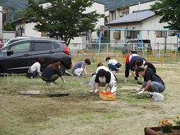 6月30日,7月7日の2回にわたり、保護者の方々が除草作業をしてくださいました。花壇やブランコの周りがきれいになりました。ありがとうございました。地面が濡れているため根についた土を落とすのが大変でした。来週は14日に実施の予定です。
