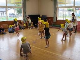 年長(ほし組)さんの朝は「チャレンジタイム」です。今週は、音楽にのって体操をしたり縄跳びをしたりして、楽しく運動しながら体力づくりをしています。