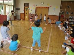 2020年7月16日 17時29分年長(ほし組)さんの朝は「チャレンジタイム」です。今週は、音楽にのって体操をしたり縄跳びをしたりして、楽しく運動しながら体力づくりをしています。