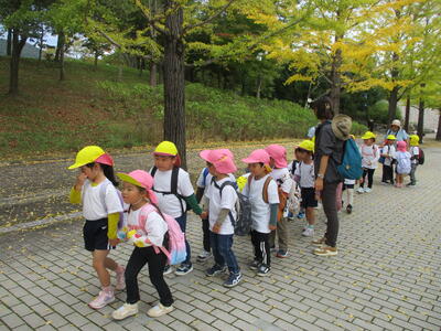 イチョウ並木が色づき、ドングリなどの木の実もたくさん見つけました。