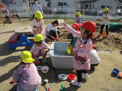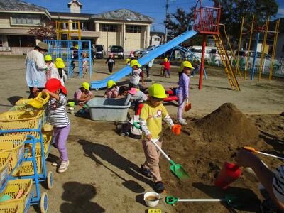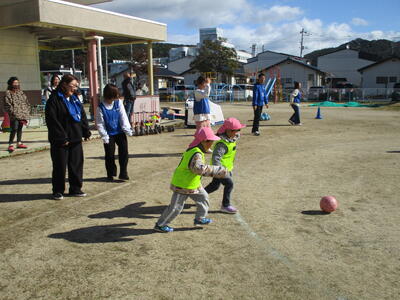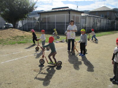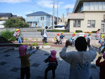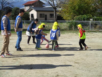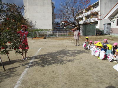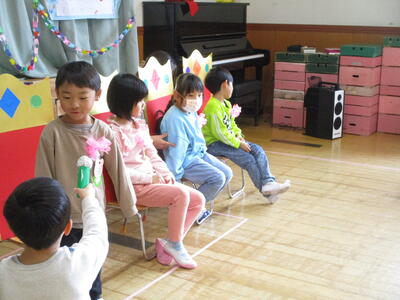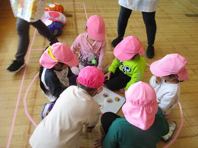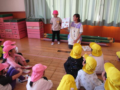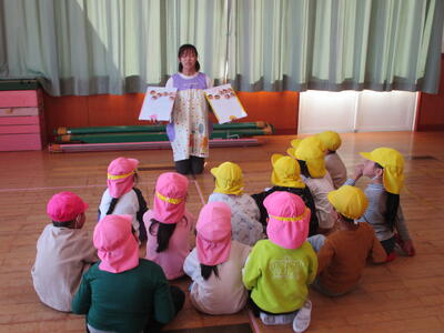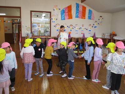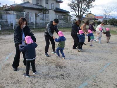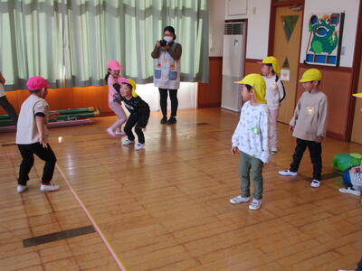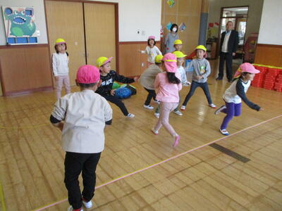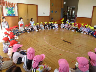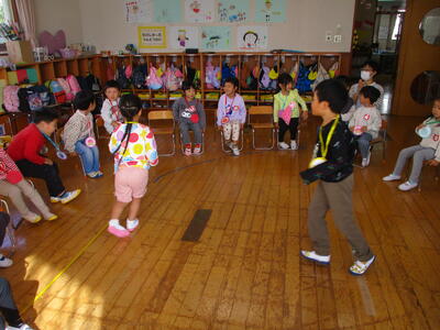 渡利保育所の4・5歳児の子どもたちが、渡利幼稚園へ遊びに来てくれました。
