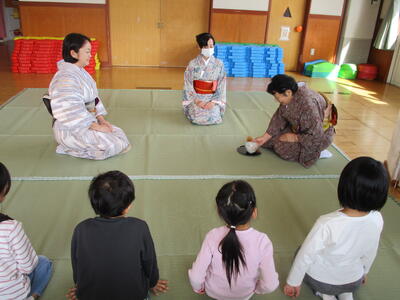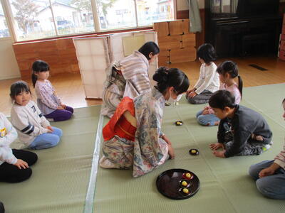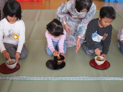 年長ほし組の子どもたちが、2回目の茶道教室を行いました。