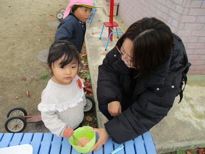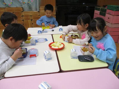 岡山幼稚園との4回目の交流活動があり、岡山幼稚園の年長の子どもたちが来園しました。