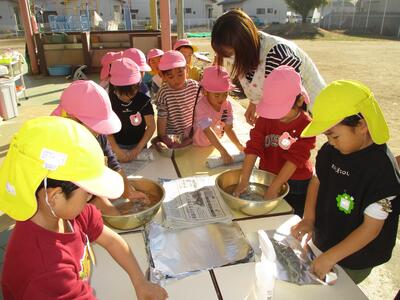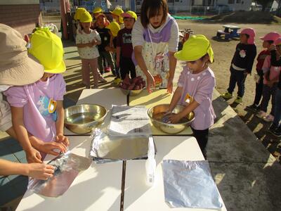 先日みんなで収穫したさつまいもで、やきいもをしました。