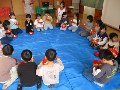 最後に、みんなでリンゴを食べました。甘くて、とてもおいしかったです。
