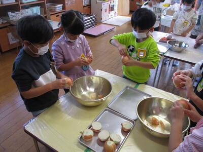 また、お菓子は、先日収穫したサツマイモから、自分たちで作りました。