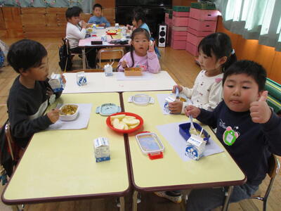幼稚園で収穫したさつまいもを入れたさつまいもカレーでした。