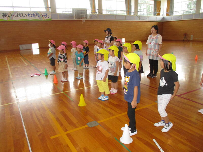 天気が良ければ園庭で行いますが、雨天の場合は、渡利小学校の体育館をお借りして実施します。