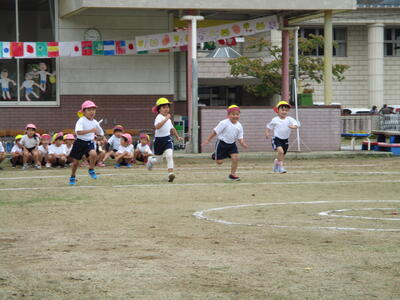 心配された雨も降らずに、運動会を広い園庭で行うことができました。