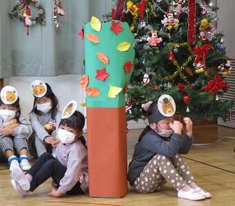 〇 年長ほし組さんが、劇「変身トンネル」を発表しました。