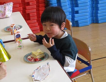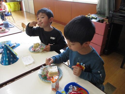 〇 お昼のお弁当に、ケーキとジュースをおいしくいただきました。