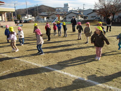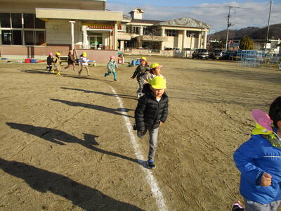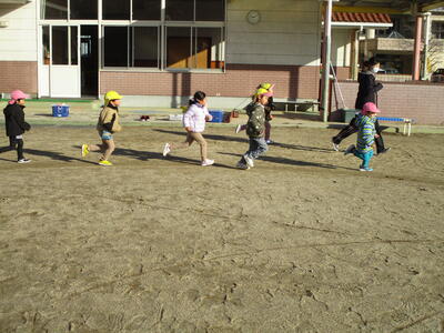 朝日を浴びて元気に 2023年1月12日 14時06分 朝のチャレンジタイムの時間。天気の良い日は、屋外運動で体力づくりを行っています。 子どもたちは、寒さに負けずに、朝日を浴びながら、ダンス運動や広い園庭を活用したマラソン運動に、元気に取り組んでいます。