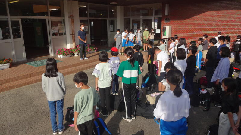 今日15日は5年生が宿泊学習へ、4年生は見学学習へ出発しました。