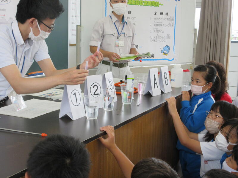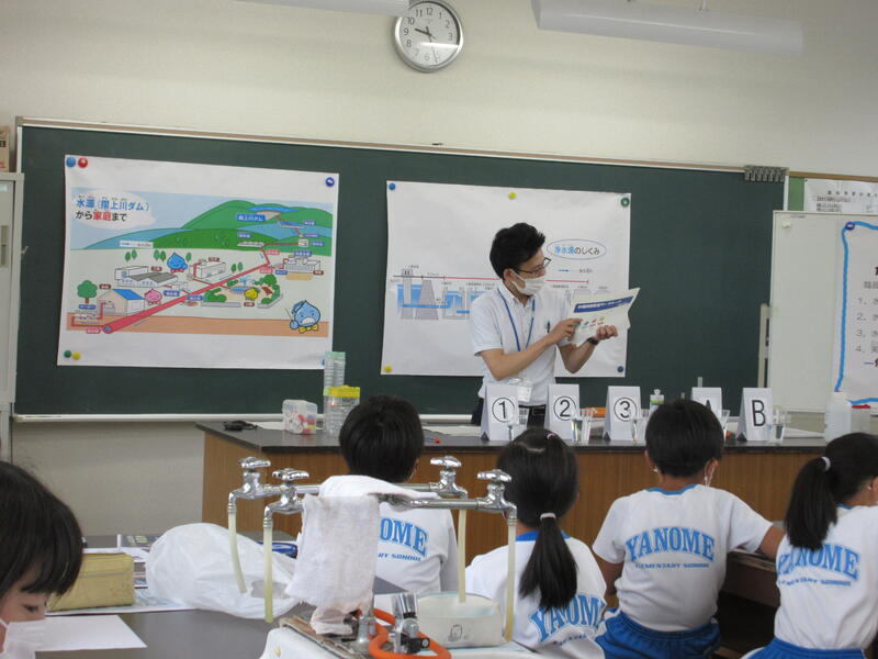 6日(水)の2・3校時に、4年生が水道出前教室を実施しました。