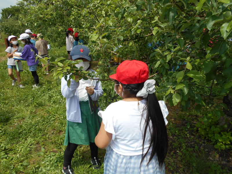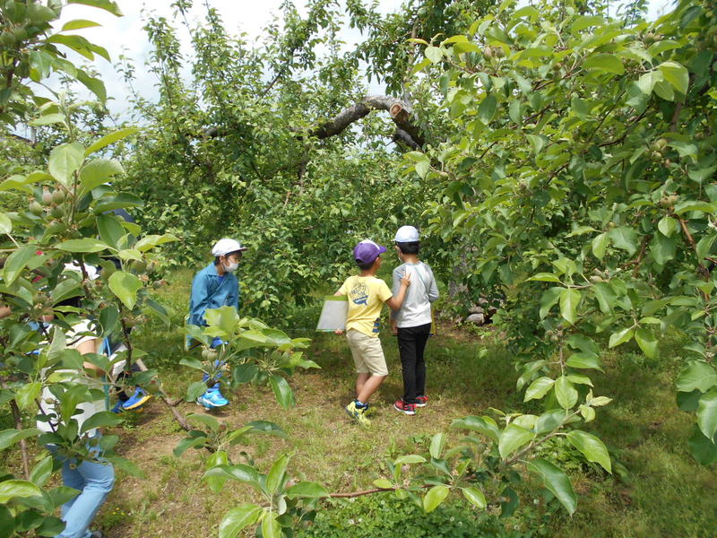 今回は、りんご畑を見学させていただきました。りんごの花粉や