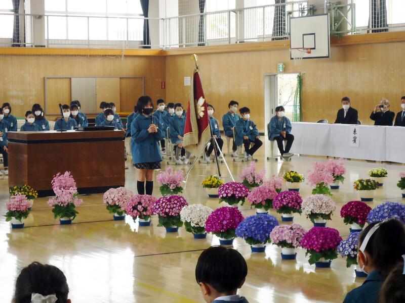 式には6年生も参加し、代表児童が歓迎の言葉を述べました。