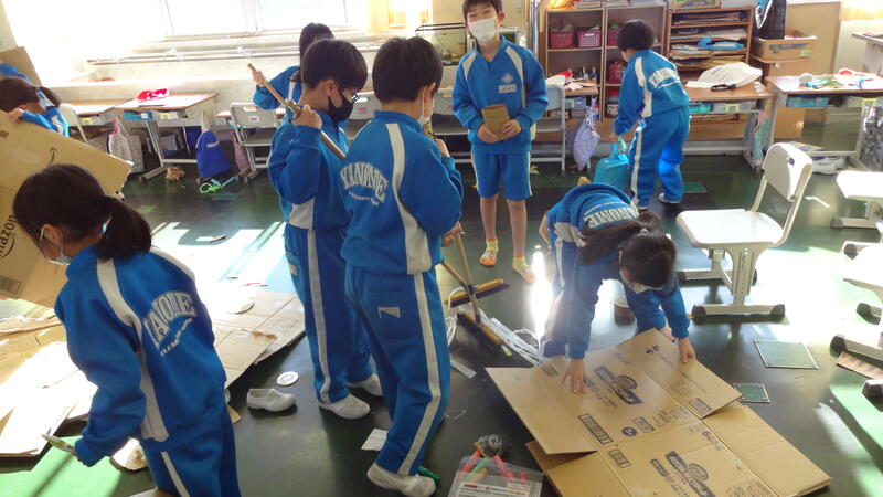 2021年12月14日 20時55分今日は2年生が楽しみにしていた図画工作の授業「だんボールに入ってみると!?」を行いました。