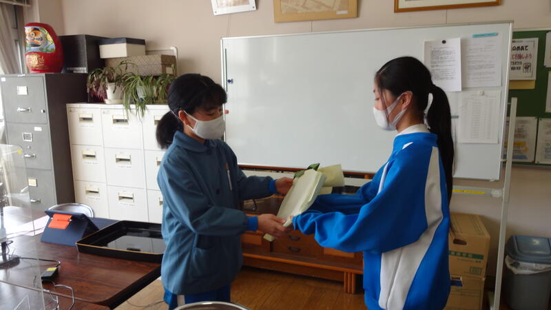 表彰の後は、縦割り班のプレゼント贈呈です。それぞれの班で作った色紙を、各班の6年生に渡しました。