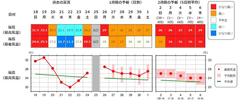 【2週間気温予報】※出典:福島地方気象台