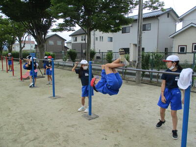 【鉄棒あそび】※コウモリだそうです。