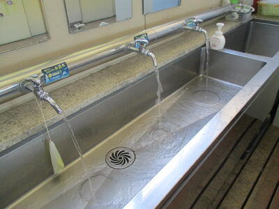 ※しばらくの間、水道を使っていなかったので、養護教諭が水出しをしてくれました。