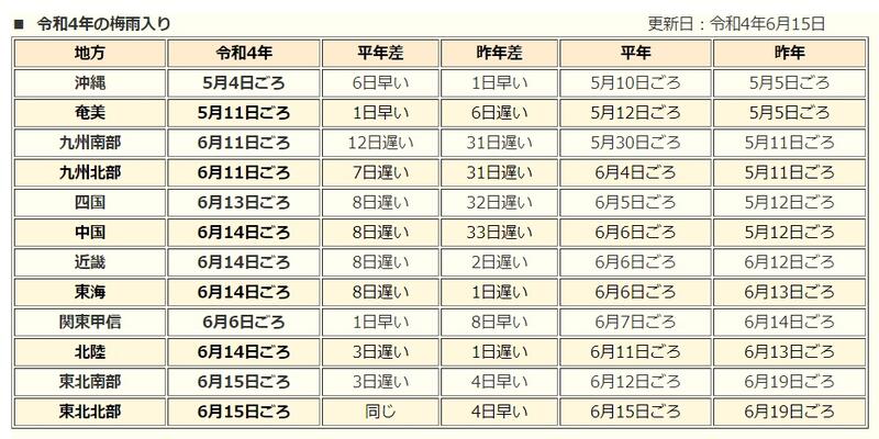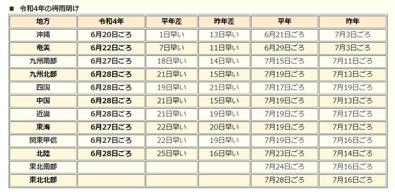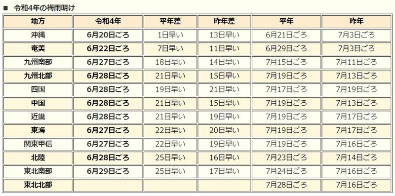 【もう梅雨明け?】「梅雨の期間は14日間で、統計開始後最も期間の短い梅雨」とのことです。
