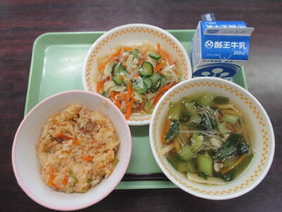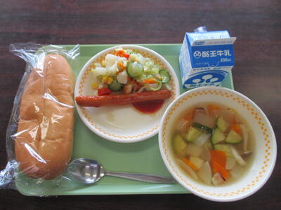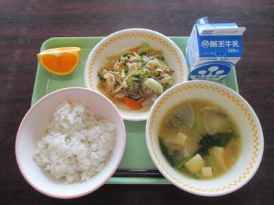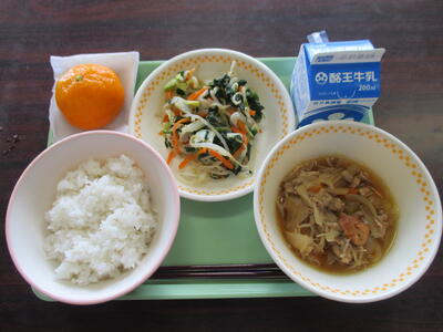 【今日の給食です】※暑い日にぴったりの冷凍ミカンでした。