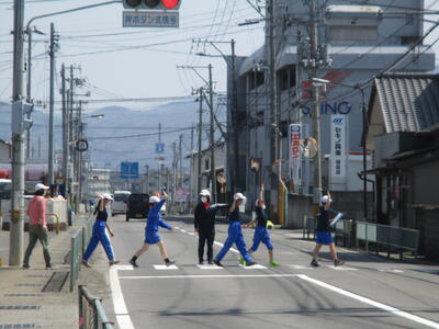 3 弟や妹、おじいさん、おばあさんなど、みんなに交通のきまりを守るよう声を掛けます。