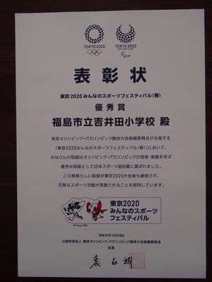 この賞状と副賞は、本日10月30日(水)に届いたのですが、本日は、4年生以上がパラリンピック競技種目の「ボッチャ」の体験教室の日でした。ちょっとした縁を感じます。